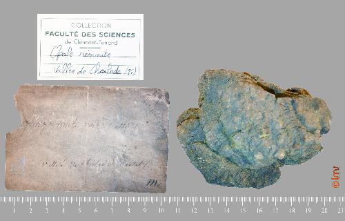| Commentaire : | Etiquette manuscrite = ''quartz résinite vert…'' |