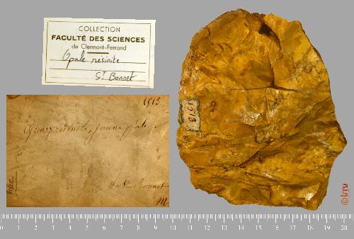 | Commentaire : | Etiquette manuscrite :''quartz résinite jaune pâle'' |