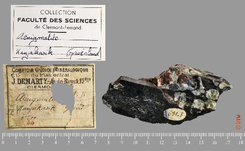 | Chimie : | (Na,Ca)4(Fe++,Ti,Mg)12Si12O40 |
