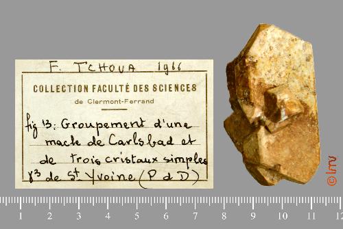 | Commentaire : | Fig 13 : Groupement d'une mâcle de Carlsbad et de trois cristaux simples |
