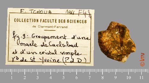 | Commentaire : | Fig 9 : Groupement d'une mâcle de Carlsbad et d'un cristal simple - granite de St Yvoine |