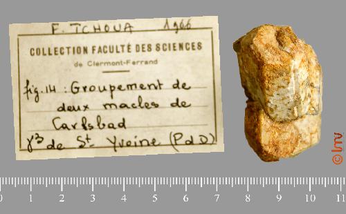| Commentaire : | Fig 14 : Groupement de deux mâcles de Carlsbad - granite de St Yvoine |