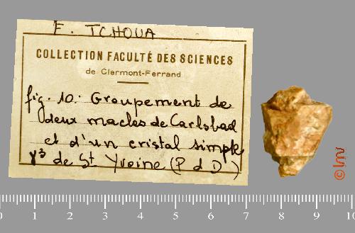 | Commentaire : | Fig 10 : Groupement de deux mâcles de Carlsbad et d'un cristal simple - granite de St Yvoine |