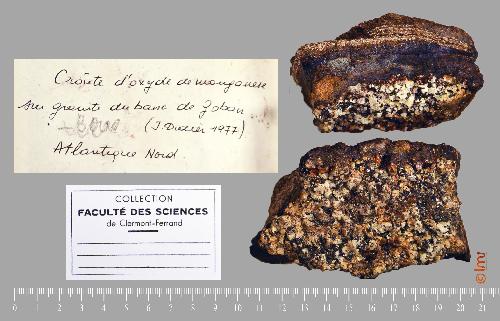 Croûte d'oxyde de manganèse sur granite du banc de Goban