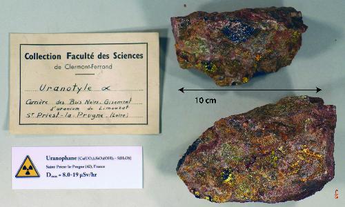 | Commentaire : | Syn. Uranolite-α - Carrière des Bois Noirs - Gisement d'uranium du Limouzat |