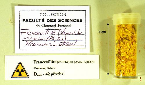 | Chimie : | [(BaPb)(UO2)2V2O8-5(H2O)] |