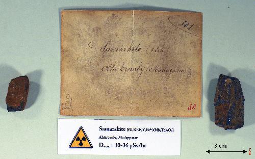 | Chimie : | [(U,REE,Y,Fe3+)(Nb,Ta)5O4] |