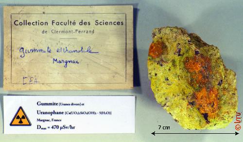 | Commentaire : | CEA - Uranophane [Ca(UO_2)_2SiO_3(OH)_2-5(H_2O)] |