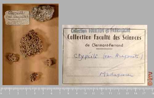| Commentaire : | Var. Aragonite - Offert par M. Lacroix - Collection Fourton et Patriarche |