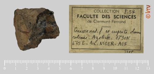 Cuivre natif et cuprite dans calcaire