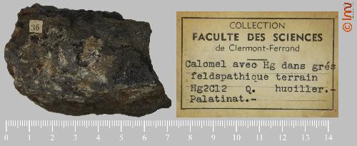 Calomel avec Hg dans grès feldspathique terrain houiller