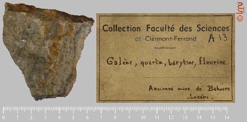 | Nom International : | Galena, quartz, baryte, fluorite |