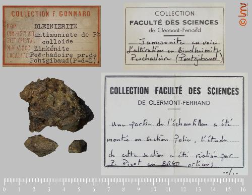 | Commentaire : | Un partie de l'échantillon a été montré en section polie, l'étude de cette section a été réalisé par M. Picot au BRGM Orléans. |