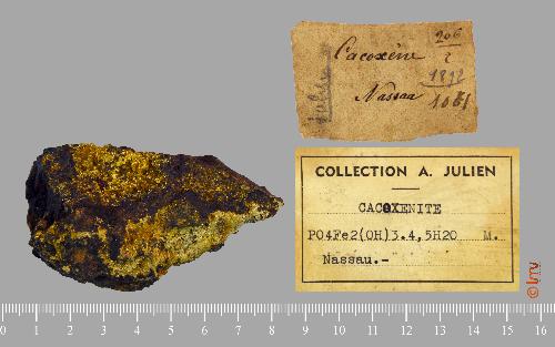 | Chimie : | Fe3+24AlO6(PO4)17(OH)12 · 75H2O |