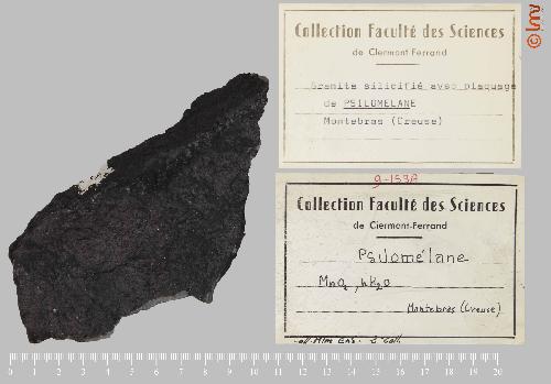 | Commentaire : | granite silicifié avec plaquage de Psilomelane |