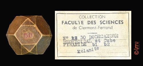 Dodécaèdre, rhomboïdal et cube pyramidé bl b2 : mélanite (n°30)