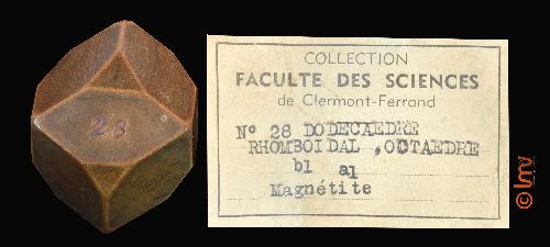 Dodécaèdre, rhomboïdal, octaèdre bl al : magnétite (n°28)