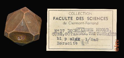 Dodécaèdre, rhomb. Cube, octaèdre, tritétraèdre bl p al/x 1/2a2 : boracite (n°37)