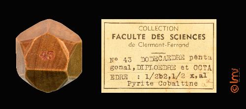 Dodéaèdre pentagonal, diploèdre et octaèdre : 1/2b2,1/2 x, al : pyrite, colbatine (n°43)