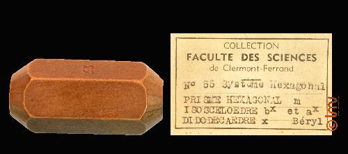 Hexagonal : prisme hexagonal m isoscéloèdre bx et ax, didodécaèdre x : béryl (n°55)