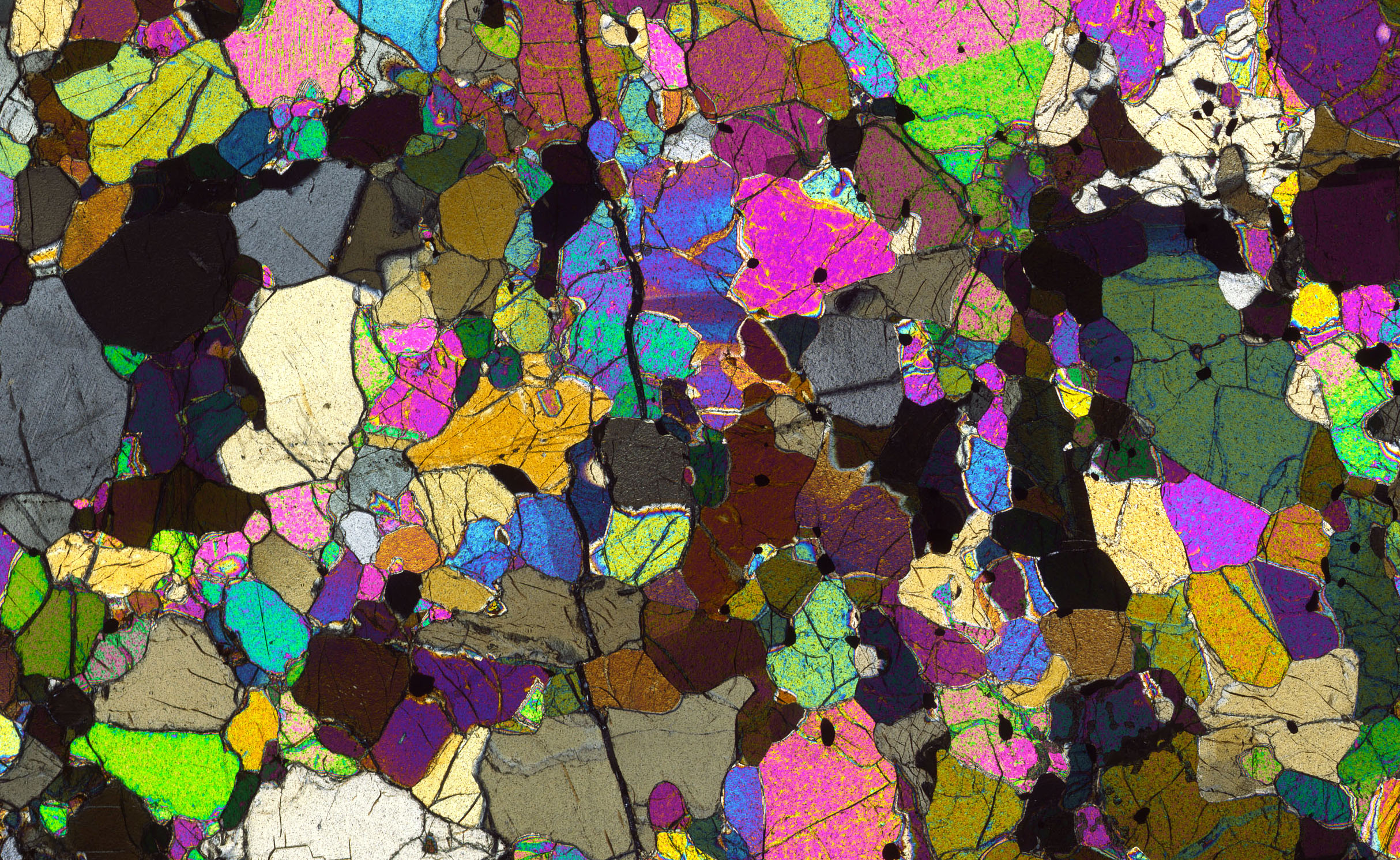 (1) des lames minces couvertes pour l’observation au microscope optique en lumière transmise : identification des minéraux en fonction de leur couleur, de leur biréfringence, du relief, etc. (Figure 1) ;