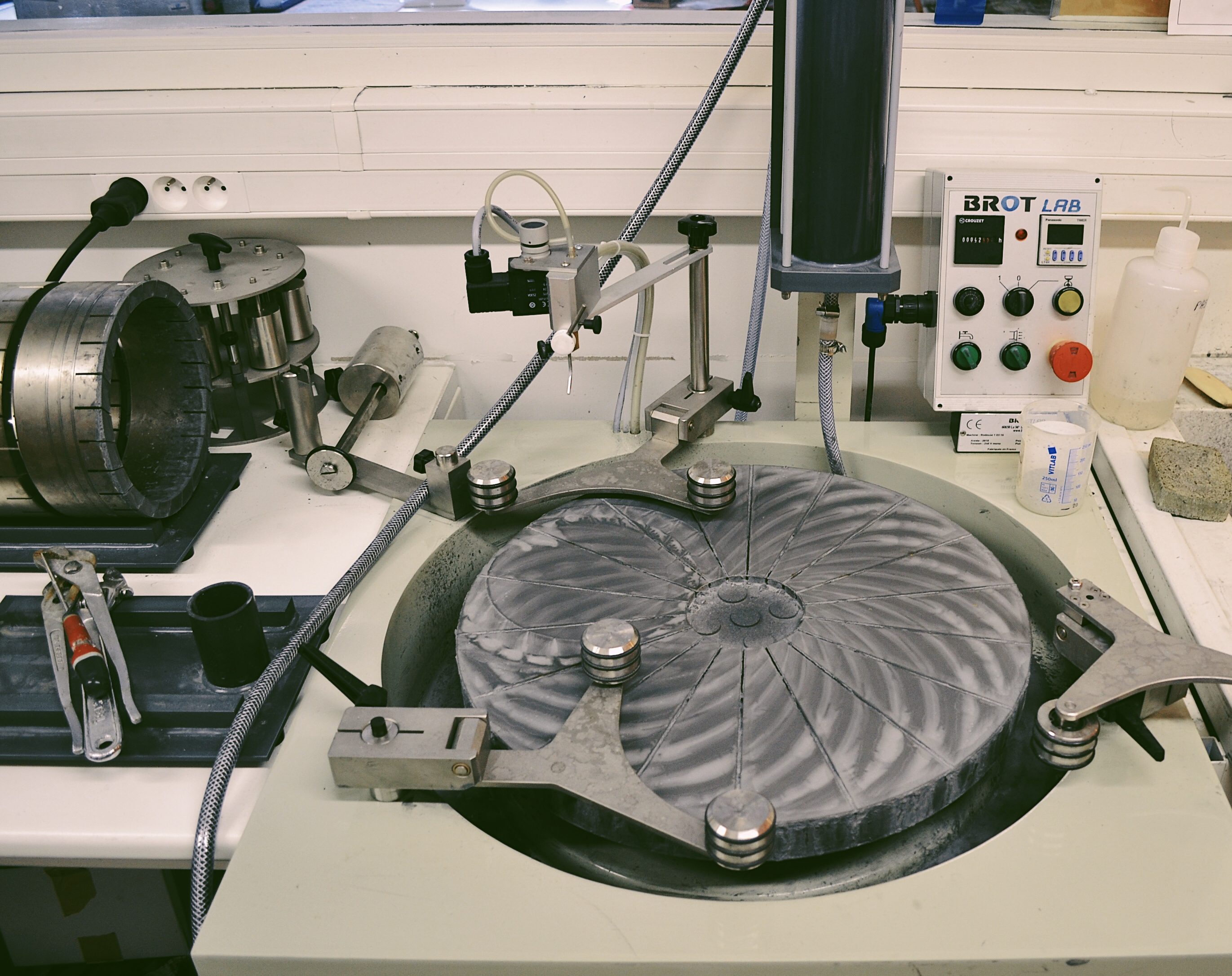 (3) des préparations spéciales : imprégnation des échantillons friables ou poreux à la résine ; lames à deux faces polies ; grandes lames (45 x 60 mm) couvertes ou polies ; carottages dans des objets précieux.